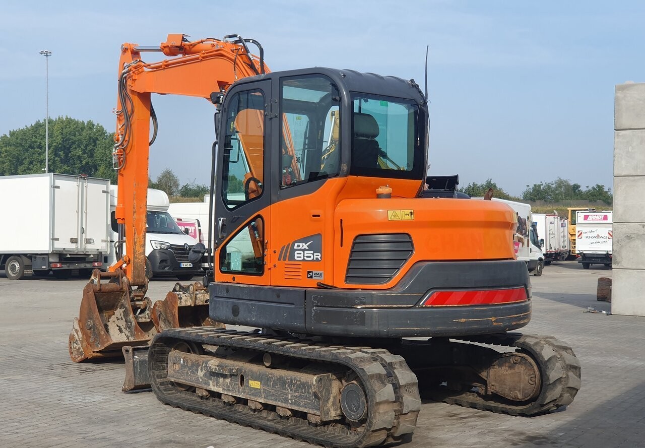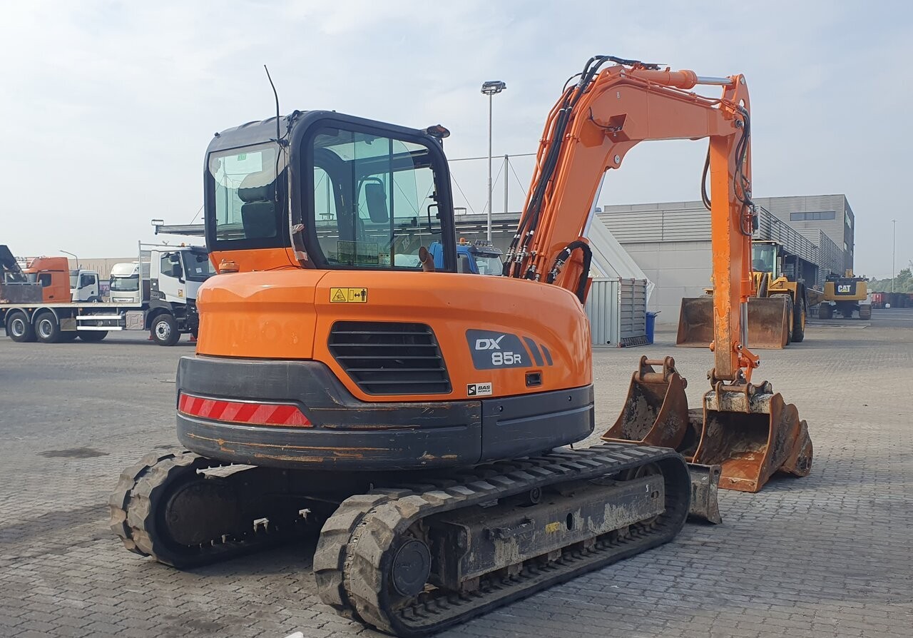 Doosan Model DX85 Type DX85 R-3 Engine Output KW (on typeplate) 44 KW Gross Vehicle Weight (GVW) 8,600 kg Year of manufacture 2021 Cabin Cabin certifications ROPS Hours of use 3,149 hr Type of cabin Closed Type of Hours Digital Engine Engine output 44 KW Engine Type 4TNV98C Engine Manufacturer Yanmar Fuel type Diesel Amount of cilinders 4 Engine displacement 3.319 EPA number MYDXL03.3NDA Voltage 12V Undercarriage Blade Shoes width 45 cm Track shoes rubber type Rubber track Track shoes type Rubber Track width (Minimum) 230 cm Undercarriage Tracked Hydraulics Hammer Function Quick coupler function Rotation Function Attachments Amount of digging buckets 3 Bucket type Loading Bucket 2 type Loading Bucket 3 type Loading Bucket width 150 cm Bucket width 2 60 cm Bucket width 3 45 cm Quick coupler Quick coupler brand Geith Boom and stick Boom type Mono Weights and dimensions Vehicle Height 270 cm Vehicle Length 625 cm Vehicle Width 233 cm Vehicle Image 270 cm625 cm233 cm